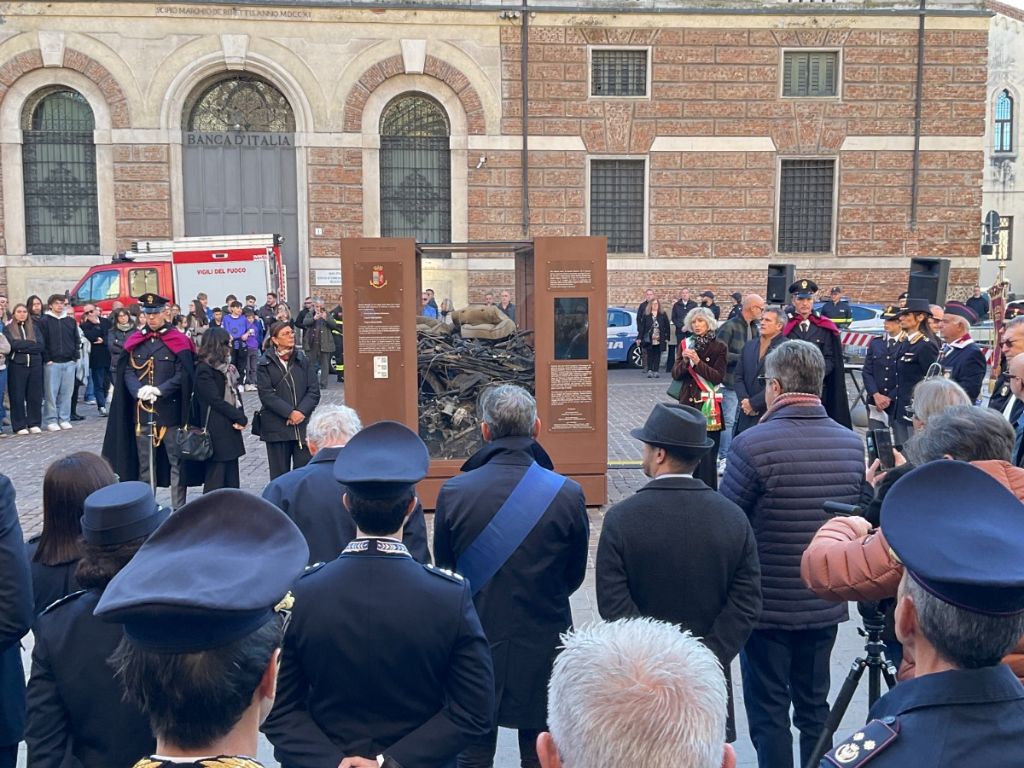 A seguire, il Questore della provincia di Padova Marco Odorisio, il Prefetto Giuseppe Forlenza e l’Assessore alla Sicurezza del Comune di Padova Diego Bonavina, insieme al Presidente nazionale Donatori Nati Claudio Saltari e ad una rappresentanza di studenti degli Istituti scolastici presenti, hanno scoperto la teca con all’interno i resti della Quarto Savona 15.